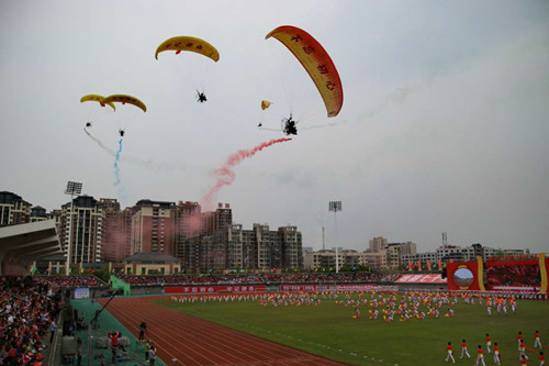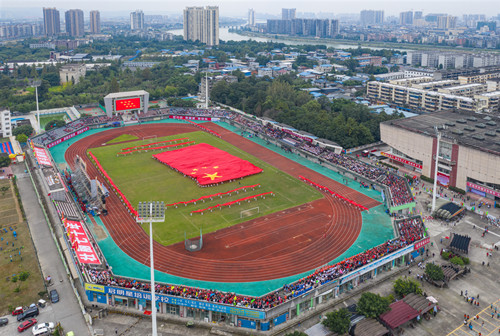 參與本次活動的運動員、教練員、裁判員和職工代表共計5000余人參加了開幕式并觀看了精彩紛呈的大型團體表演?!岸Y贊祖國(快閃)”、“運動快樂 健康生活”、“奮斗新時代 共筑中國夢”三個篇章環(huán)環(huán)相扣、層層遞進,巨幅國旗、彩煙禮炮、空中滑翔等精彩表演引得現(xiàn)場陣陣掌聲和歡呼,不斷將運動會的氛圍推向高潮,全民熱情高漲,共同歡慶新中國70華誕!(江油市總工會 張 超)