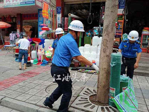 為改善場(chǎng)鎮(zhèn)形象,進(jìn)一步整治街道“臟、亂、差”問(wèn)題,營(yíng)造整潔、優(yōu)美、秩序良好的居住環(huán)境,2019年下旬,武都鎮(zhèn)成立了綜合執(zhí)法隊(duì),購(gòu)置執(zhí)法車(chē)6輛,并對(duì)全隊(duì)工作人員進(jìn)行培訓(xùn),提高執(zhí)法水平,不斷提升行政執(zhí)法能力。結(jié)合武都鎮(zhèn)實(shí)際情況,將場(chǎng)鎮(zhèn)以工農(nóng)路為界分為南北兩個(gè)片區(qū),全隊(duì)成立兩個(gè)小分隊(duì),各負(fù)其責(zé),加強(qiáng)對(duì)人員密集點(diǎn)的執(zhí)法力度。
