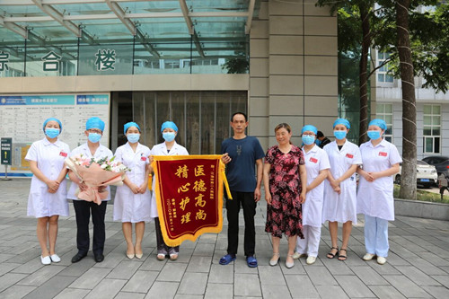 醫(yī)護(hù)人員將鮮章明夫婦送上汽車,反復(fù)叮囑他回家后要多休息,及時(shí)復(fù)診?!爸x謝你們,謝謝你們!”妻子侯興菊拉著醫(yī)務(wù)人員的手依依不舍,13天的朝夕相處,他們與醫(yī)務(wù)人員建立起了“醫(yī)患一家”的深厚情誼。