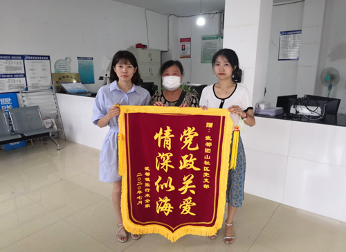 陳阿姨向團山社區(qū)黨委贈送錦旗。