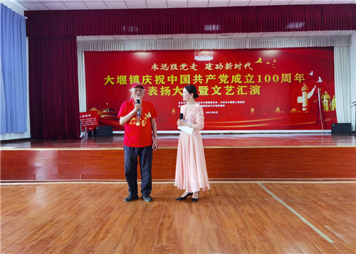 永遠(yuǎn)跟黨走 建功新時(shí)代。6月30日下午,大堰鎮(zhèn)慶祝中國(guó)共產(chǎn)黨成立100周年的文藝匯演拉開(kāi)帷幕。大家齊聚一堂,用歡歌悅舞迎接黨的百年華誕、謳歌黨的豐功偉績(jī)。鎮(zhèn)機(jī)關(guān)干部職工、各村(社區(qū))兩委常職干部、黨員代表、退役軍人代表等到場(chǎng)觀看。