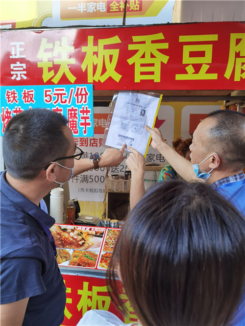 堵疏結(jié)合、積極引導(dǎo)。檢查中發(fā)現(xiàn)存在經(jīng)營攤點(diǎn)食品攤販登記卡過期、從業(yè)人員健康證過期、個(gè)別經(jīng)營證件不齊全、存在安全隱患等問題。針對發(fā)現(xiàn)的問題,檢查人員一方面下達(dá)整改通知書要求限時(shí)整改;另一方面積極引導(dǎo)業(yè)主整改,為其提出具體整改建議和措施。同時(shí),還現(xiàn)場開展了咨詢解惑活動(dòng)。(中壩街道 林勝)
