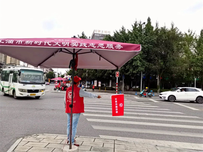 不論是酷暑炎熱,還是刮風(fēng)下雨,在江油城區(qū)各交通路口勸導(dǎo)點(diǎn),身著“紅馬甲”的志愿者們都堅(jiān)守在崗位、疏導(dǎo)交通,勸導(dǎo)不文明交通行為,用“滴滴汗水”傳遞著文明。