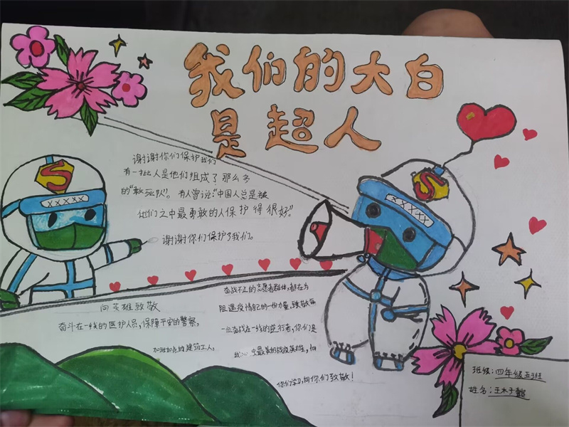 少先隊員們用樸實的話語贊美平凡的英雄,那些感動直擊人心。在疫情面前,“逆行者”披甲上陣,守護(hù)我們的家園。感恩的愛心學(xué)子用赤橙黃綠青藍(lán)紫給這個秋雨綿綿的隔離期一抹金秋的亮色,描繪的“大白”、“小藍(lán)”、“紅馬甲”是這個秋天里最美的風(fēng)景。那些暖人的關(guān)懷牽動你我,讓我們向所有的醫(yī)護(hù)人員和志愿者們致敬,江油加油!